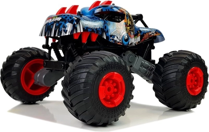 Originalna konstrukcija koja podsjeća na kostur i atraktivni detalji nadahnuti dinosaurima, uključujući crvene ljuske na krovu, izdvajaju vozilo od drugih modela. Auto postiže brzinu do 15 km/h, što jamči punu dinamiku vožnje i mnoštvo uzbudljivih trenutaka tijekom igre. Ergonomski daljinski upravljač, koji je dio seta, osigurava udobno i intuitivno upravljanje vozilom te omogućuje lako skretanje i precizno manevriranje.