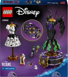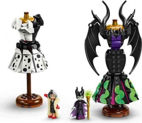 Ovaj stilski set za stariju djecu i odrasle obožavatelje donosi dva impresivna modela haljina nadahnuta slavnim Disneyjevim negativcima. U pakiranju ćete pronaći dvije odvojene vješalice za haljine, izložbeno postolje s prostorom za pohranu za mini lutkice, životinjice i dodatke, kao i elemente za izradu tri različita uzorka na dekorativnoj ploči. Model je idealan i za igru priča i za dizajnersko izlaganje.