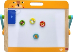 Ova svestrana ploča marke Tooky Toy izrađena je od kvalitetnog drva i premazana netoksičnim bojama. Zahvaljujući lakoj prenosivosti i dvjema funkcijama - ploča za crtanje i magnetska strana - pruža sate kreativne zabave. Set sadrži 6 elemenata uključujući gumicu i 4 šarena magneta.