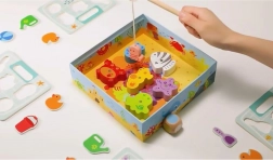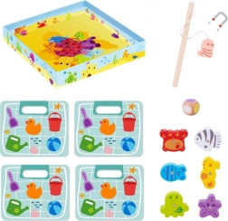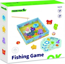 Zabavna drvena igra pecanja od TOOKY TOY spaja prvu jednostavnu igru s treniranjem vještina. Djeca love šarene morske stanovnike magnetskom udicom, slažu ih na igraće karte i uče finu motoriku, koordinaciju oko–ruka, strpljenje i osnovna pravila igara. Idealna obiteljska zabava za najmlađe od 18 mjeseci.