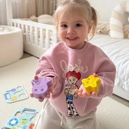 - Sigurni i izdržljivi materijali: drvo i kvalitetan tisak, ugodno na dodir.