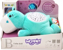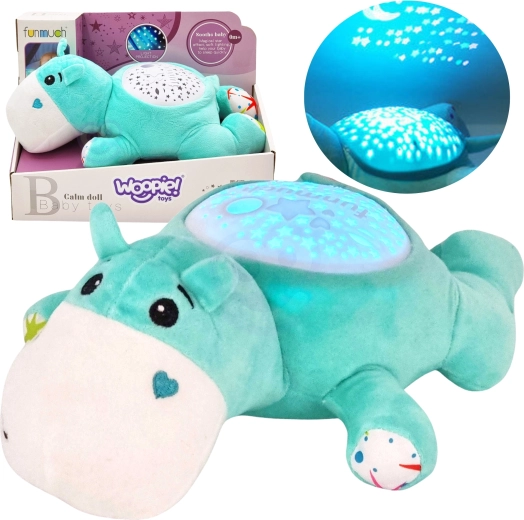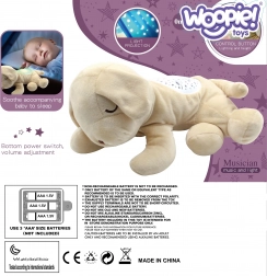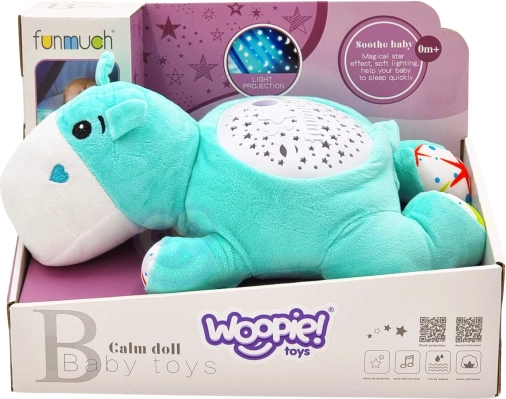 Plišani hipi WOOPIE BABY stvara prije spavanja opuštajuću atmosferu zahvaljujući nježnom svjetlu projektora i relaksirajućim uspavankama s prirodnim zvukovima. Svjetiljke glatko mijenjaju boje i projiciraju zvijezde, mjesec i planete, što djeci pruža osjećaj sigurnosti.