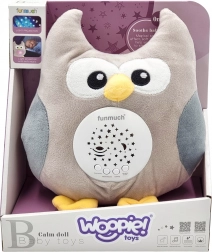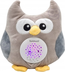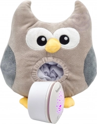 Plišana sova objedinjuje noćno svjetlo, projektor i zvučni modul u jednom. Mekano tijelo od ugodnog materijala ispunjeno je vatom, pa je idealno za maženje. Na trbuščiću projicira nježne zvjezdice i mjesec s mijenjajućim bojama te istovremeno reproducira uspavanke ili bijeli šum uključujući otkucaje srca za prirodno umirenje.