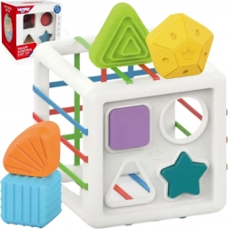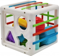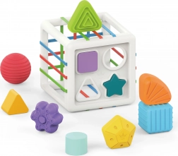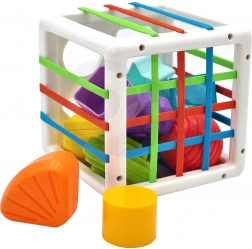 Igračka je idealna za poticanje fine motorike, koordinacije oko–ruka i osjetilnog razvoja. Kako dijete raste, s kockom možete ciljano uvježbavati učenje boja i oblika, imenovanje i prve zadatke sortiranja. Sigurni materijali i izdržljiva izrada osiguravaju dug vijek trajanja pri svakodnevnoj igri.