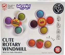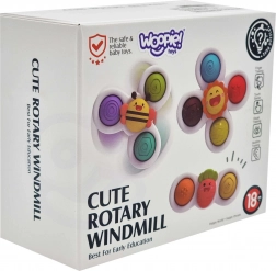 Set WOOPIE sadrži tri simpatična spinnera u obliku sunca, pčelice i mrkvice. Zahvaljujući izdržljivim ležajevima igračke se glatko i dugo okreću, dok šareni gumeni elementi mame djecu na stiskanje i otkrivanje različitih tekstura. Vakuumski držači omogućuju lako pričvršćivanje na glatke površine – prozor, pločice, kadu ili stol.
