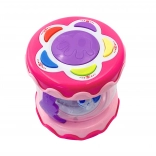 Ova multifunkcionalna igračka 3-u-1 kombinira bubanj, vrtuljak i projektor. Namijenjena je maloj djeci od 18 mjeseci i potiče razvoj osjetila dugotrajnom igrom.