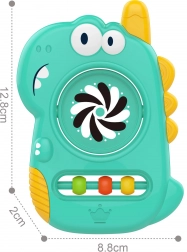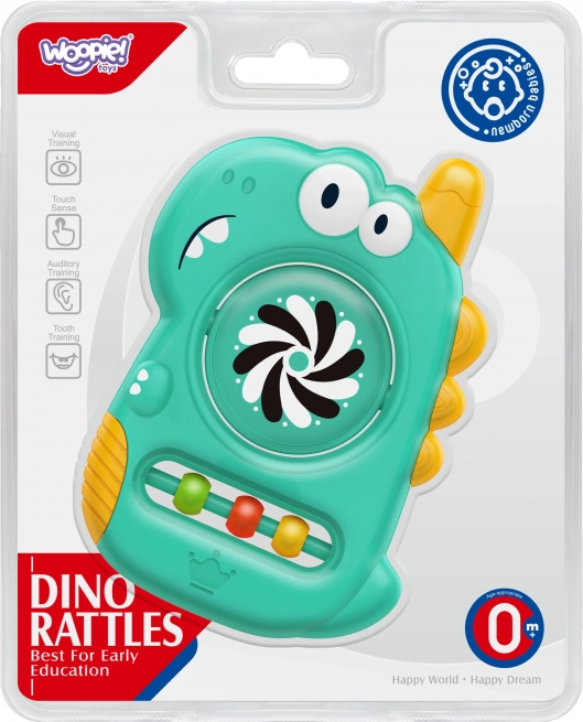 Preslatko dino grizalo brenda WOOPIE idealna je prva igračka za bebe. Kombinira 3u1: senzoričku igračku, grizalo i zrcalo, ima meke silikonske dijelove, šarene perlice i sigurne zaobljene oblike za male ručice. Odlično potiče razvoj osjetila, finu motoriku i koordinaciju oko–ruka.