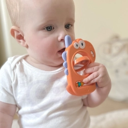 Sjajno dino grizalo WOOPIE osmišljeno je posebno za potrebe najmlađih. Zahvaljujući ergonomskom obliku dobro leži u ruci, mekani silikonski elementi olakšavaju razdoblje nicanja zubića, a ugrađeno zrcalo i pokretne perlice prirodno potiču vid, sluh i dodir. Sve u jednom sigurnom i zabavnom paketu.