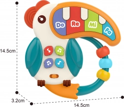 - Glazbene tipke (Do, Re, Mi, Fa), melodije bez riječi, klizne perlice, grizalo
