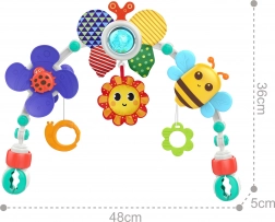 WOOPIE luk s igračkama je dizajniran kako bi djeci pružio ne samo zabavu, već i razvoj. Na luku se nalaze razne igračke poput vjetrenjače s bubamarom koja se vrti i vibrira tijekom kretanja, sunce koje zviždi pri stiskanju, zvečkica s leptirima s prozirnom kuglom u kojoj skakuću šarene kuglice, te šuškavi materijali koji obogaćuju dječje senzorno iskustvo.