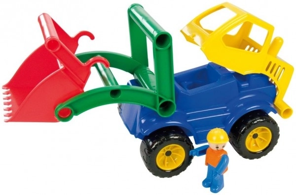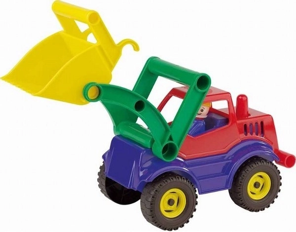 Šareni aktivni utovarivač marke Lena od kvalitetne, izdržljive plastike razveselit će sve male graditelje. Potpuno je mehanički funkcionalan, ima otvorivu kabinu s aktivnom figuricom te zahvaljujući robusnoj konstrukciji podnosi i intenzivnu igru u kući i na otvorenom.