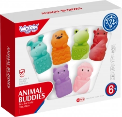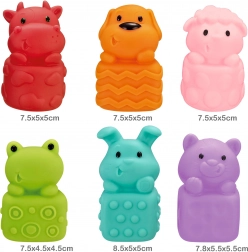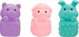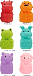 Senzorske gumene životinjice marke Woopie za uživanje u kupanju. Ove životinjice poput nilskog konja, ovčice, zeca, mačke, žabice i psa izrađene su od mekane gume i zahvaljujući otvoru mogu prskati vodu. Svaka životinjica je na podlozi s senzorskim izbočinama za jednostavno držanje.<\div>