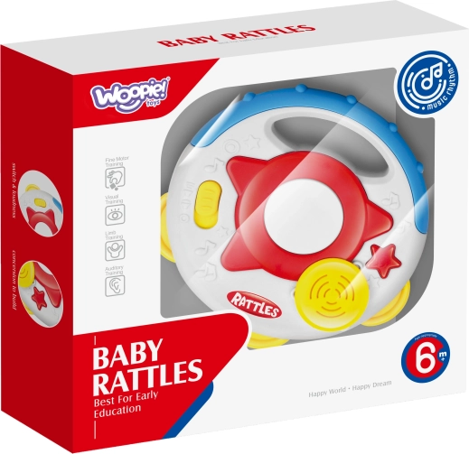 Upoznajte prvu glazbenu igračku koju će vaše dijete obožavati. Interaktivna tamburina WOOPIE BABY osmišljena je za najmlađe kako bi bila sigurna, poticajna i jednostavna za korištenje. Šareni detalji pozivaju na istraživanje, tipke nakon pritiska reproduciraju vesele zvukove te potiču prirodnu znatiželju i želju za otkrivanjem ritma.