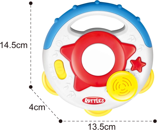 Zahvaljujući ergonomskom obliku, tamburina dobro leži i u malim ručicama. Igra s tipkama i hvatanje igračke jačaju finu motoriku i koordinaciju oko–ruka, a zvučni efekti razvijaju slušnu percepciju i osjećaj za ritam. Upotrijebljeni materijali su 100% netoksični, pa možete biti sigurni u sigurnost pri svakodnevnoj igri.
