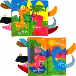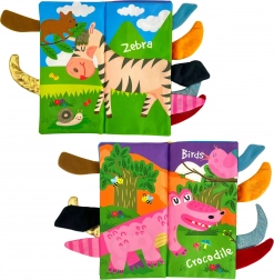 Platnena knjižica s motivom šumskih životinja idealna je prva igračka za najmlađe. Meke stranice sa šuškavim učinkom stimuliraju sluh, živopisne boje potiču vid, a izbočeni repići jednostavno pozivaju na hvatanje. Djeca tako prirodno vježbaju finu motoriku i koordinaciju ruka–oko.