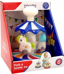 Veseli i šareni vrtuljak s konjićima brenda WOOPIE savršena je igračka koja djeci pruža nezaboravne trenutke radosti i razvoja. Pritiskom na bijeli gumb, simpatične životinjice počinju veselo kružiti, stvarajući dojam minijaturnog pravog vrtuljka. Igračka se može koristiti već od 6 mjeseci starosti, što je čini idealnim poklonom za najmlađe. WOOPIE je poznat po visokoj kvaliteti i sigurnosti svojih proizvoda, pa roditelji mogu biti mirni da vrtuljak ispunjava sve sigurnosne norme.