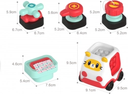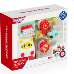 Interaktivni autić Mačkica WOOPIE Baby zabavna je montessori građevna igračka za najmlađe koja razvija finu motoriku, maštu i osjetilnu percepciju. Set sadrži autić i 4 lako pričvrstiva bloka s funkcijama: izvadiva vezica, okretnik, stlačivi dozator i navojni poklopac. Izrađeno od sigurnih i izdržljivih materijala za djecu od 18 mjeseci.