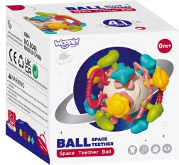 Meka zvečkajuća kuglica 4u1 WOOPIE – osjetilna igračka i grickalica za bebe
