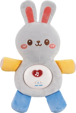 Interaktivni plišani zečić dizajniran je za najmlađe, od rođenja. Nježna površina, sigurni vezeni detalji i umirujuće melodije pomažu bebi brže zaspati i osjećati se sigurno. Svjetlosni element na trbuščiću stvara ugodnu atmosferu tijekom večerne rutine.