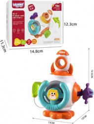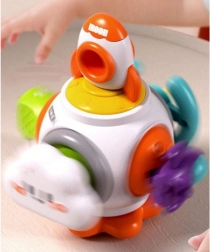 Montessori svemirska raketa brenda WOOPIE je šarena, edukativna senzorna kocka namijenjena djeci od 18 mjeseci. Sadrži šest aktivnih panela koji stimuliraju osjetila i razvijaju motoričke vještine djeteta, s elementima poput volana, gumba oblak i raketnih igračaka.