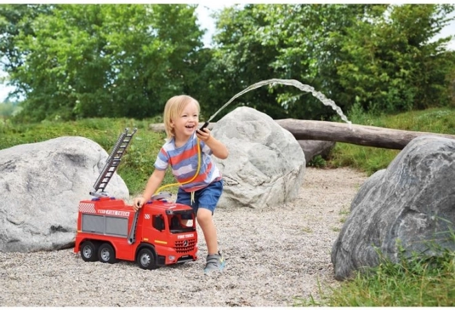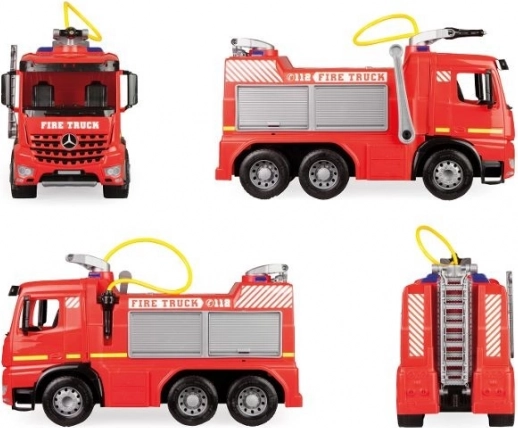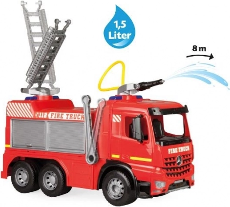 Veliko dječje vatrogasno vozilo MERCEDES AROCS marke LENA donosi realističnu zabavu za male vatrogasce. Ima funkcionalni vodeni top s spremnikom od 1,5 l i dometom do 8 m, izvlačljivu ljestvu i robustnu, izdržljivu konstrukciju prikladnu za igru u kući i na otvorenom.