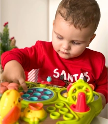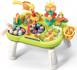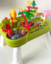 Interaktivni multistolić WOOPIE donosi djeci zabavu i razvoj u jednom. Zahvaljujući 8 aktivnosti u 1 nudi sate otkrivanja: ribolov ribica, izbijanje crvića čekićem, vrtlarenje s cvjetićima i mrkvicama te igru s ptićem pri izvlačenju crvića. Podupire finu motoriku, strpljenje, koncentraciju i koordinaciju oko–ruka.