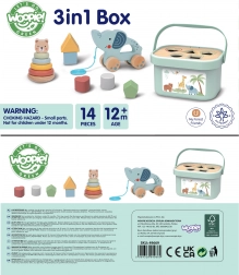 Otkrijte obrazovni set 3-u-1 od WOOPIE GREEN – pametna kombinacija kutije sa sorterom, piramide s medvjedićem i vučnog slona. Igračka je izrađena od sigurnih materijala, ima zaobljene rubove i praktičan poklopac na zatvaranje s ručkom za lako prenošenje. Odlično za razvoj fine i grube motorike, učenje oblika i boja te koordinacije već od 12 mjeseci.