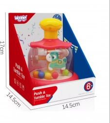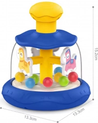Otkrijte svijet kroz igru s inovativnom igračkom "Zabavni vrtuljak"! Dizajnirana je za najmlađe istraživače i pomaže razvijati njihove motoričke, osjetilne i kognitivne sposobnosti. Dovoljno je da dijete pritisne žuti gornji dio vrtuljka i konj s kuglicama počet će se kretati.