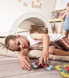 Set od tri šarena WOOPIE spinnera idealna je senzorička igračka za djecu od 18 mjeseci. Zahvaljujući čvrstim vakuumskim čašicama lako ih postavite na glatke površine – staklo, kadu ili stol – i djetetu osigurate zabavnu i sigurnu aktivnost gdje god poželite. Spinneri imaju gumene izbočene elemente i prstene za okretanje, koji potiču osjet dodira, vid i koncentraciju.
