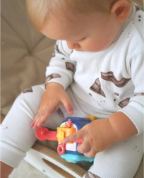 - Potiče razvoj motoričkih vještina kroz hvatanje, povlačenje, okretanje i pritisak različitih dijelova