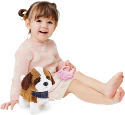 Ovaj interaktivni plišani psić donosi djeci puno zabave zahvaljujući kombinaciji pokreta i zvučnih efekata. Nakon spajanja kabela s upravljačem u otvor na vratu reagira na razne podražaje: pritiskom na povodac počinje hodati, dodirom glave pokreće efekte, a nakon pljeskanja ponovno kreće u šetnju. Mekana izrada čini ga idealnom igračkom za svakodnevnu igru.