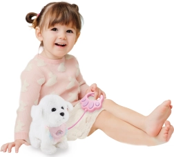 Ovaj mekani i mazni plišani psić veličine 22 cm donosi djeci puno radosti zahvaljujući realističnim pokretima i zvukovima. Kabel s upravljačem spaja se u otvor na vratu i omogućuje jednostavno upravljanje hodanjem i efektima. Zahvaljujući kombinaciji dodira, pljeskanja i tipki, igra je intuitivna i zabavna.