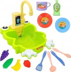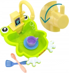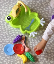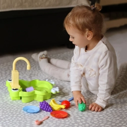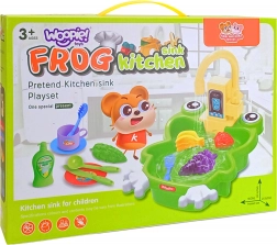 Sudoper Žabica sjajna je interaktivna igračka koja pretvara svakodnevne kuhinjske aktivnosti u zabavnu igru. Realna slavina s kruženjem vode nakon ulijevanja vode u sudoper i umetanja baterija oponaša pravo pranje posuđa i voća. Zahvaljujući simpatičnom žabjem dizajnu, igra odmah privlači djecu i motivira ih na istraživanje.
