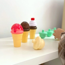 Set za sladoledara razvija dječju maštu i kreativnost, kada dijete može preuzeti ulogu slastičara i kupca. Sadrži sve dijelove potrebne za stvaranje savršenog sladolednog iskustva. Dijete uzima kornet, nabere kuglicu sladoleda i slaže je prema vlastitoj kreativnosti.