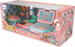 Dječja blagajna WOOPIE idealna je za male prodavače od 3 godine. Set sadrži 24 dodatka uključujući košaricu, voće i povrće, napitke, sladoled, igraći novac i platnu karticu. Realistični elementi poput čitača, vage, mikrofona i platnog terminala stvaraju autentičan doživljaj kupovine.