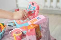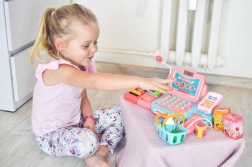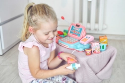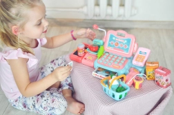 Zahvaljujući čitaču i integriranoj vagi djeca lako „oskeniraju“ robu i izvagaju voće ili povrće za realističan doživljaj.