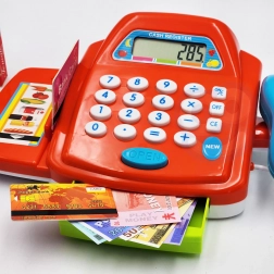- Pravi kalkulator, zvučni efekti skenera, izvlačiva ladica za novac