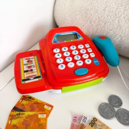 - Realistična igra trgovine – skener sa zvukovima, numerička tipkovnica i platni dodaci.