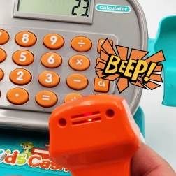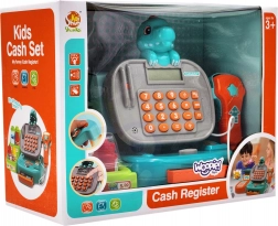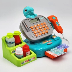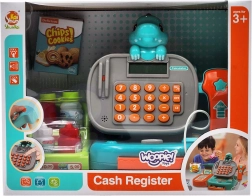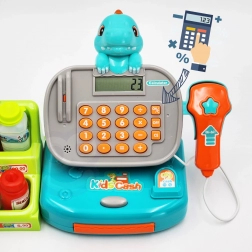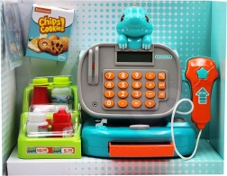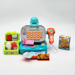 Stvorite kućnu trgovinu s dječjom blagajnom WOOPIE DINO u plavoj boji. Djeca mogu „skenirati“ robu pomoću skenera s realističnim zvukovima, unijeti cijenu na pravom kalkulatoru i platiti kovanicama, novčanicama ili karticom. Dio seta je i praktična polica za robu koja igri daje autentičnost.