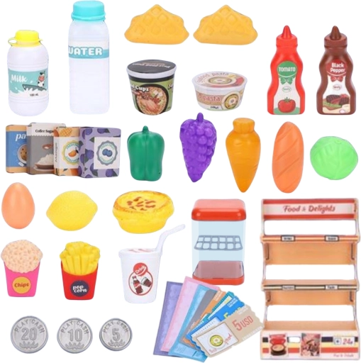 Igra trgovine potiče samostalno razmišljanje, komunikaciju i kreativnu igru. Zahvaljujući 42 elementa – od voća i povrća do napitaka i konzervi – djeca mogu stvarati vlastite scenarije i vježbati svakodnevne situacije.