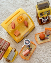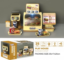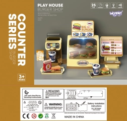 Set sadrži 25 dijelova uključujući hamburgere, pomfrit, sendviče, čaše sa slamkama, pladnjeve, zaslon s menijem i dispenzer za pića u koji se može uliti voda i doista „točiti“ u čaše. Šareni plastični dodaci lagani su i idealni za igre uloga – poslužitelj, kuhar i blagajnik.