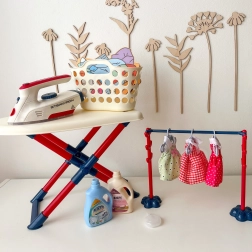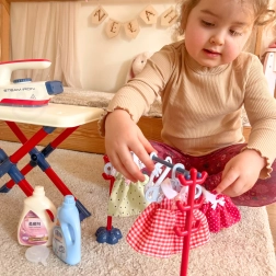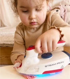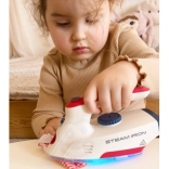 Glačalo je igračka sigurna za djecu jer se ne zagrijava, ali je opremljeno mnogim funkcijama koje obogaćuju igru: gumbom za imitaciju stvarnih zvukova glačanja, LED svjetlom i zvučnim efektima u obliku pjesmica. Ovaj set je idealan za djecu koja vole oponašati roditelje u svakodnevnim aktivnostima.