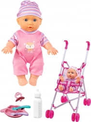 Lutka Bobas s kolicima i setom za hranjenje idealna je igračka za djecu od 3 godine. Ovaj set omogućuje djeci vježbanje fine motorike i razvoj mašte.