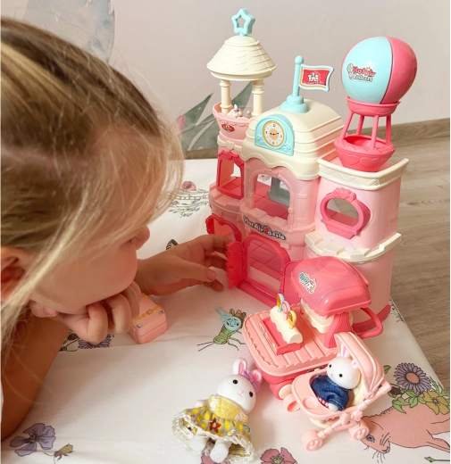 U pakiranju ćete pronaći mamu i mladunče zeca, preslatkog psića, rozi dječji kolica, kolica sa sladoledom i poslasticama te praktične sitnice kao što su ključevi, sat ili fotoaparat. Kvalitetni i sigurni materijali idealni su za svakodnevnu upotrebu i dug vijek trajanja.