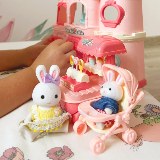 Djeca stvaraju vlastite priče sa zečevima, psićem i dodacima poput kolica ili kolica sa sladoledom – idealno za kreativnu igru.