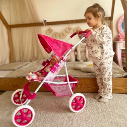 Mekani kotači ne škripe i ne ogrebu pod. Praktična košarica prima sitnice i dodatke za lutku.
