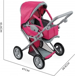 Stilska ružičasta kolica za lutke WOOPIE ROYAL razveselit će svaku malu njegovateljicu. Nude 3u1 upotrebu – duboka kolica, sportsko sjedalo i izvadivi nosiljak/torbu. Imaju podesivu ručku za različite visine djece, tihe kotače za glatku vožnju, sklopivu kapuljaču i okvir te praktičnu košaricu za sitnice.