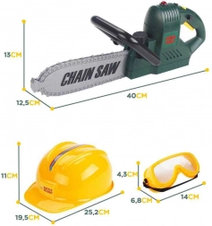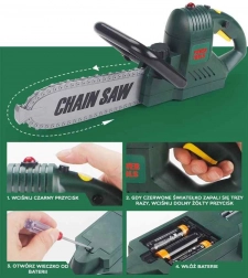 Velika igračka pila od Woopie dizajnirana je za sigurnu i zabavnu igru. Djeca mogu imitirati rad odraslih, a istovremeno su zaštićena priloženim zaštitnim elementima. Dovoljno je pritisnuti crni gumb na vrhu, i kada crveno svjetlo trepne tri puta, pritisnite gumb na ručki i vidjet ćete kako se lanac kreće po vodilici kao prava pila!