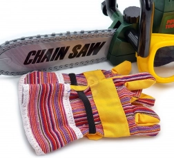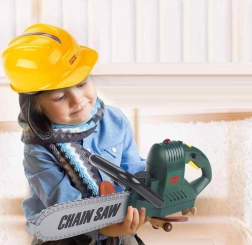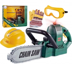 Dječja kaciga, zaštitne naočale i rukavice osiguravaju sigurnost tijekom igre i omogućuju simulaciju pravog radnog okruženja.