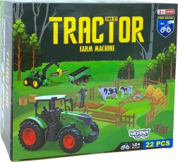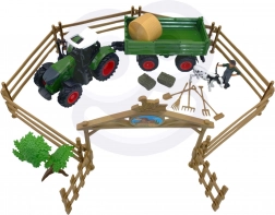 Set sadrži traktor, figurice životinja i farmera te drugu poljoprivrednu opremu koja stvara realističnu farmersku atmosferu.